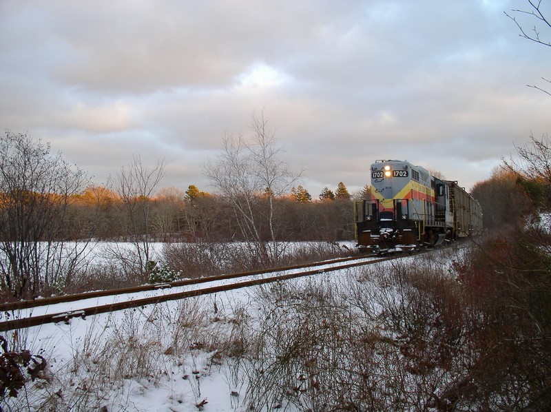 January 17, 2003: Today we follow Bay Colony GP-9R No. 1702 on the afternoon trash train. We begin in Cummaquid, and end up at Sagamore. |