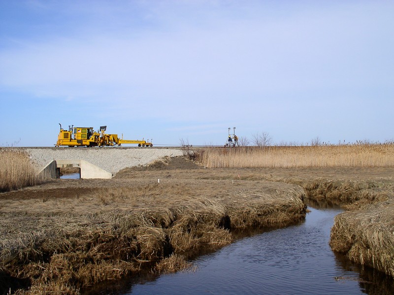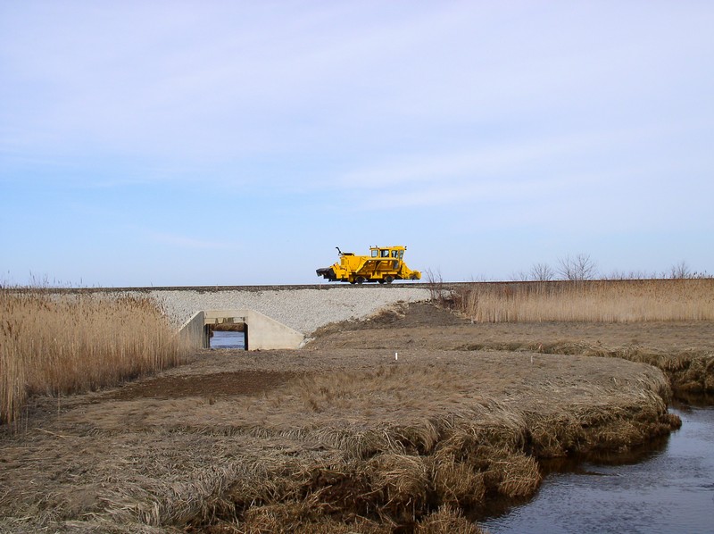 The following photographs show the work that has progessed at Bridge Creek, in West Barnstable. The new culvert seen here was installed to permit more tidal flow to the marshes. This work was made possible due to the closure of the railroad bridge over the Cape Cod Canal, which has stopped the daily Bay Colony Railroad "Trash Trains" which would normally traverse this track. As you can see, the project is now winding down. |