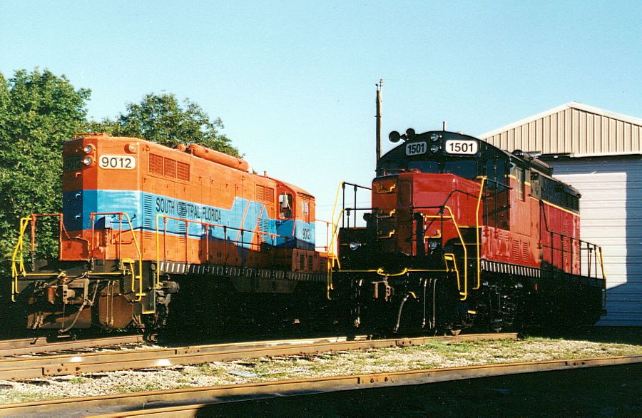 Sister GP7s 9012 and 1501 (ex. 9011) sit in the Hyannis yard on an October 2000 morning. |