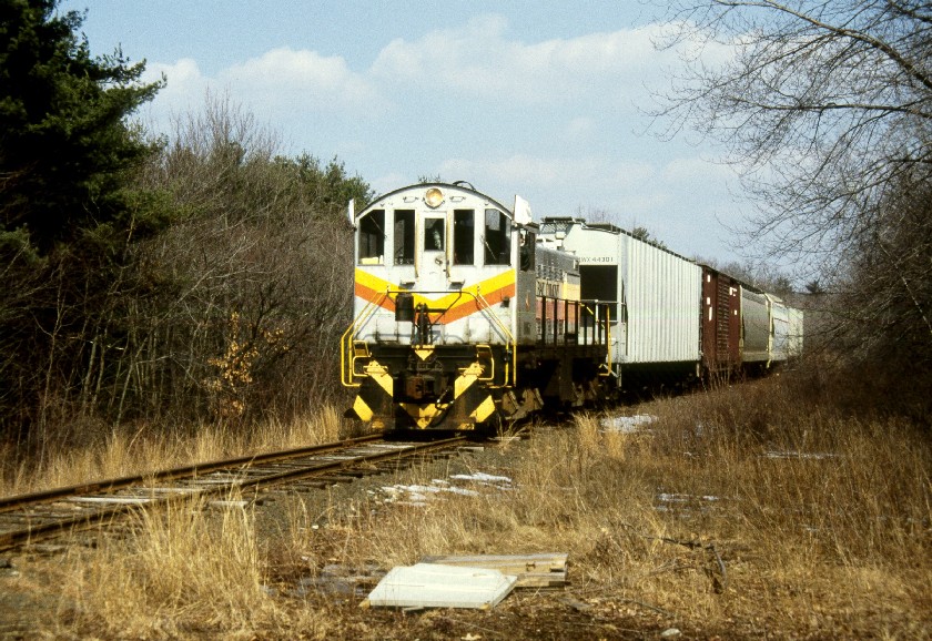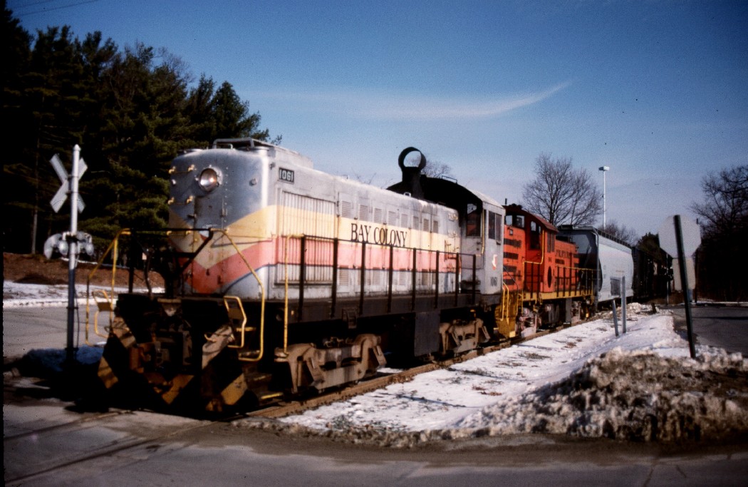 The following photographs depict Bay Colony Railroad operations on the Millis Line through Dover, Medfield, Millis, Needham and Newton, in the 1980s and 1990s. Click on a thumbnail to view the full-sized image, then use your browser's "Back" button to return here.